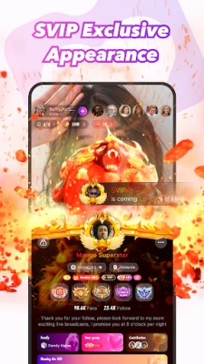 Élevez votre expérience en devenant un membre VIP privilégié de Mango En direct. Accédez à un statut distingué, débloquez des avantages exclusifs et affichez votre prestige grâce à une médaille spéciale. Personnalisez votre présence dans les salles de discussion en arborant des voitures, des couvre-chefs ou des bulles de chat uniques, vous permettant de briller et de vous démarquer au sein de la foule. Plus qu'une simple application, Mango En direct est une invitation à tisser des liens, à partager des rires et à construire une communauté unique autour de vos intérêts. Venez vivre cette aventure de connexion et de divertissement.