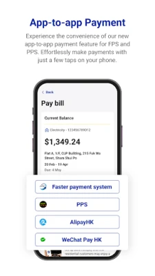 Fini le désordre des factures papier et les tracas administratifs. Grâce à sa fonctionnalité de facturation électronique, vous suivez et gérez vos consommations d'énergie de manière rapide, simple et surtout, respectueuse de l'environnement. Contribuez activement à la réduction de votre empreinte écologique en optant pour une gestion 100% numérique. Le paiement de vos factures n'a jamais été aussi pratique : consultez-les instantanément et réglez-les en un clin d'œil via les méthodes de paiement préférées comme FPS, AlipayHK, WeChat Pay HK et PPS. L'accès à l'historique de vos transactions passées est également à portée de main, pour une transparence totale.