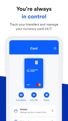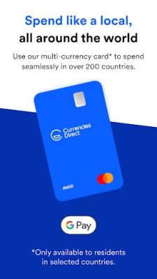 Découvrez la liberté de dépenser sans frontières grâce à la carte de débit multi-devises Currencies Direct. Acceptée partout où Mastercard® l'est, elle vous permet de régler vos achats dans plus de 200 pays sans aucun frais mensuel. Dépensez directement depuis vos portefeuilles numériques en GBP, EUR, USD, AUD, CAD, NOK, SEK, DKK, AED, PLN, CHF, CZK, HKD, ILS, JPY, SGD, THB, NZD, ZAR, et bénéficiez de taux avantageux pour toutes les autres monnaies. Gardez un œil sur vos dépenses en temps réel grâce à notre application intuitive et recevez des notifications instantanées pour chaque transaction. Veuillez noter que cette carte est actuellement réservée aux résidents du Royaume-Uni, d'Irlande, de France, d'Espagne, du Portugal, de Norvège et de Suède.