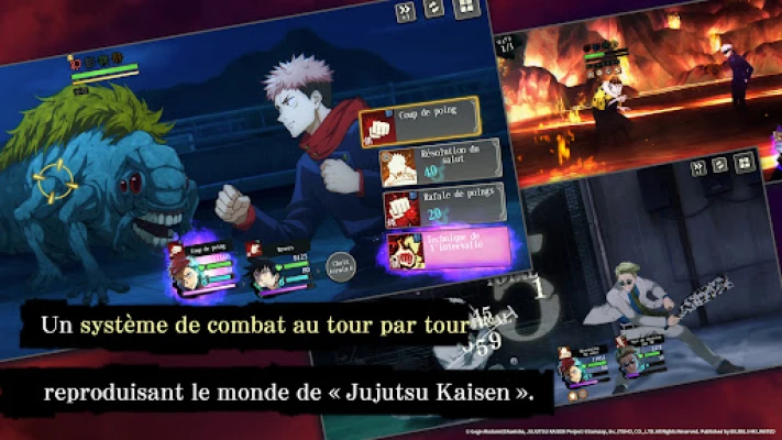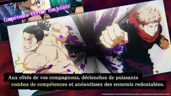 Maîtrisez l'énergie occulte et engagez-vous dans des combats épiques où chaque décision compte. Formez votre équipe de sorciers d'élite et affrontez des fléaux terrifiants avec une fidélité visuelle et une intensité dignes de l'œuvre originale. Les affrontements stratégiques mettront à l'épreuve votre capacité à combiner les techniques uniques de Yuji Itadori, Megumi Fushiguro, Nobara Kugisaki, et bien d'autres, pour purger le monde de ses menaces surnaturelles.