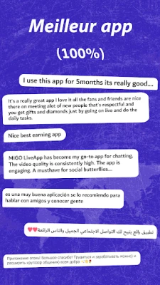 Imaginez un monde où chaque interaction vous rapproche de personnes fascinantes, partageant vos centres d'intérêt et vos passions. MIGO Live est votre passeport pour cet univers vibrant. Plongez dans des profils uniques, découvrez des hobbies inspirants et engagez-vous dans des appels vidéo et des conversations spontanées qui peuvent transformer de simples inconnus en amis précieux. Cette plateforme est conçue pour tisser des liens authentiques, vous garantissant une source intarissable de divertissement et de découvertes humaines.