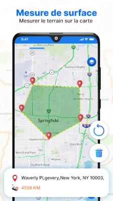 Optimisez chaque déplacement grâce aux fonctionnalités avancées intégrées à Satellite Map Live Earth View. Un compteur de vitesse vous permet de suivre votre allure, tandis qu'une boussole numérique assure une orientation impeccable. Pour les professionnels ou les curieux, la fonction de mesure de surface calcule la taille des terrains et propriétés. Avec son zoom interactif et ses couches personnalisables, cette application offre une flexibilité inégalée, vous permettant de personnaliser votre expérience et d'interagir avec la carte du monde en fonction de vos besoins spécifiques, le tout avec une précision basée sur le GPS.