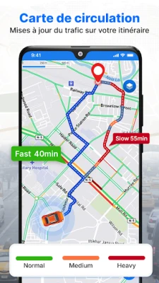 Au-delà de la simple observation, Satellite Map Live Earth View se positionne comme votre copilote idéal. Bénéficiez d'un guidage GPS pas-à-pas, de directions précises et d'une assistance vocale pour des trajets fluides et sans effort. La planification d'itinéraire intelligente vous aide à choisir les chemins les plus efficaces, tandis que les informations sur le trafic en direct vous permettent d'anticiper et d'éviter les retards. Avec la fonction de localisation en temps réel et les cartes de rue détaillées, vous pouvez visualiser votre position exacte, explorer les environs au niveau du sol et identifier facilement points d'intérêt et structures urbaines.